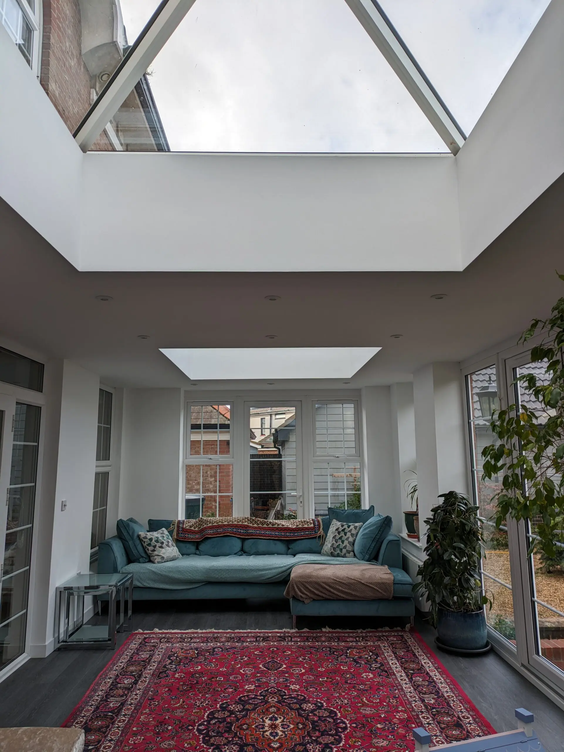 Despite the development in technology glass can not yet give the same insulating properties of the solid roof. For those that enjoy the extra light and the open feeling of a glass ceiling a combination of glass and solid roof works a treat.